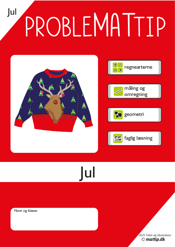 Matematikmateriale med juletema. Elever løser opgaver i regnearter, omregning, geometri og koordinatsystem. Indhold: beregning af pebernødder, opskriftstilpasning, konstruktion af kasse og kræmmerhus, spejling samt symmetri i stjerne, figurklip til snemand. Bilag rummer gitter og skema for radius, diameter og antal.